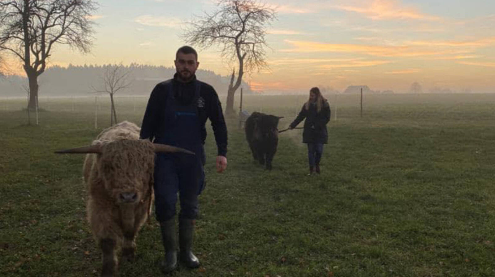 Hinter der Herde Highlands vom Heselsberg stecken wir - Isabell und Patrick Ehmele. Der Herdenname “vom Heselsberg“ bezieht sich auf unsere erste Weidefläche am Heselsberg. Von dort hat man einen super Blick über ganz Ochsenhausen.